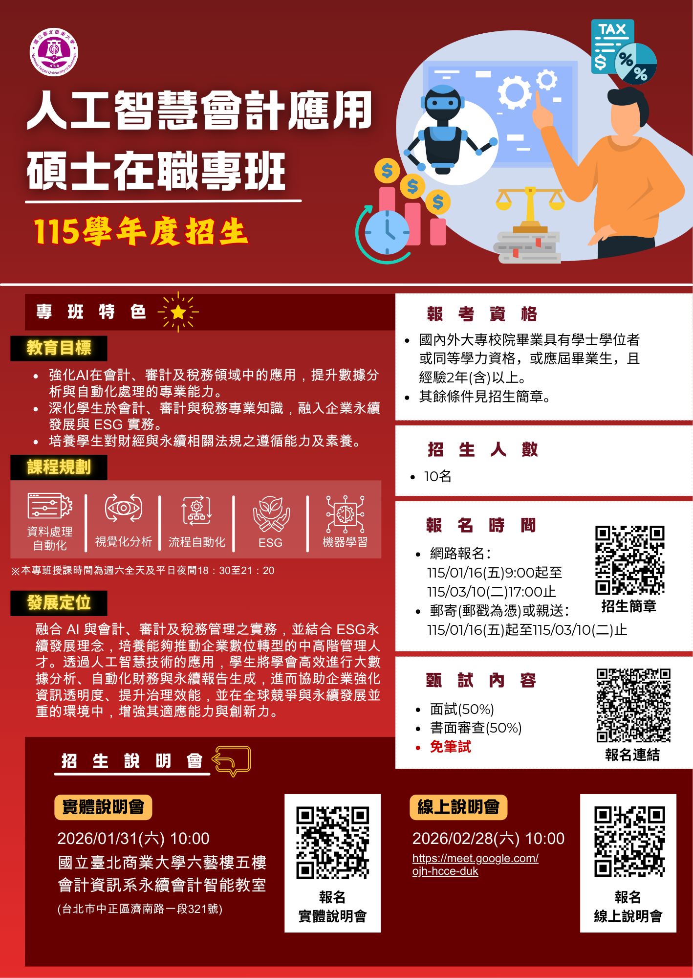 115學年度人工智慧會計應用碩士在職專班熱烈招生中!